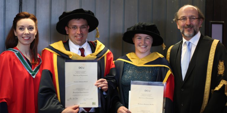 It was freezing and there was a northerly wind whipping through DCU campus but that wasn’t going to keep us from smiling ! We had a double celebration in our group today with the graduation of Dr Andrew Webb and Dr Kathryn McRae photographed here with our president Prof Brian Mac Craith. Kathryn was supervised…